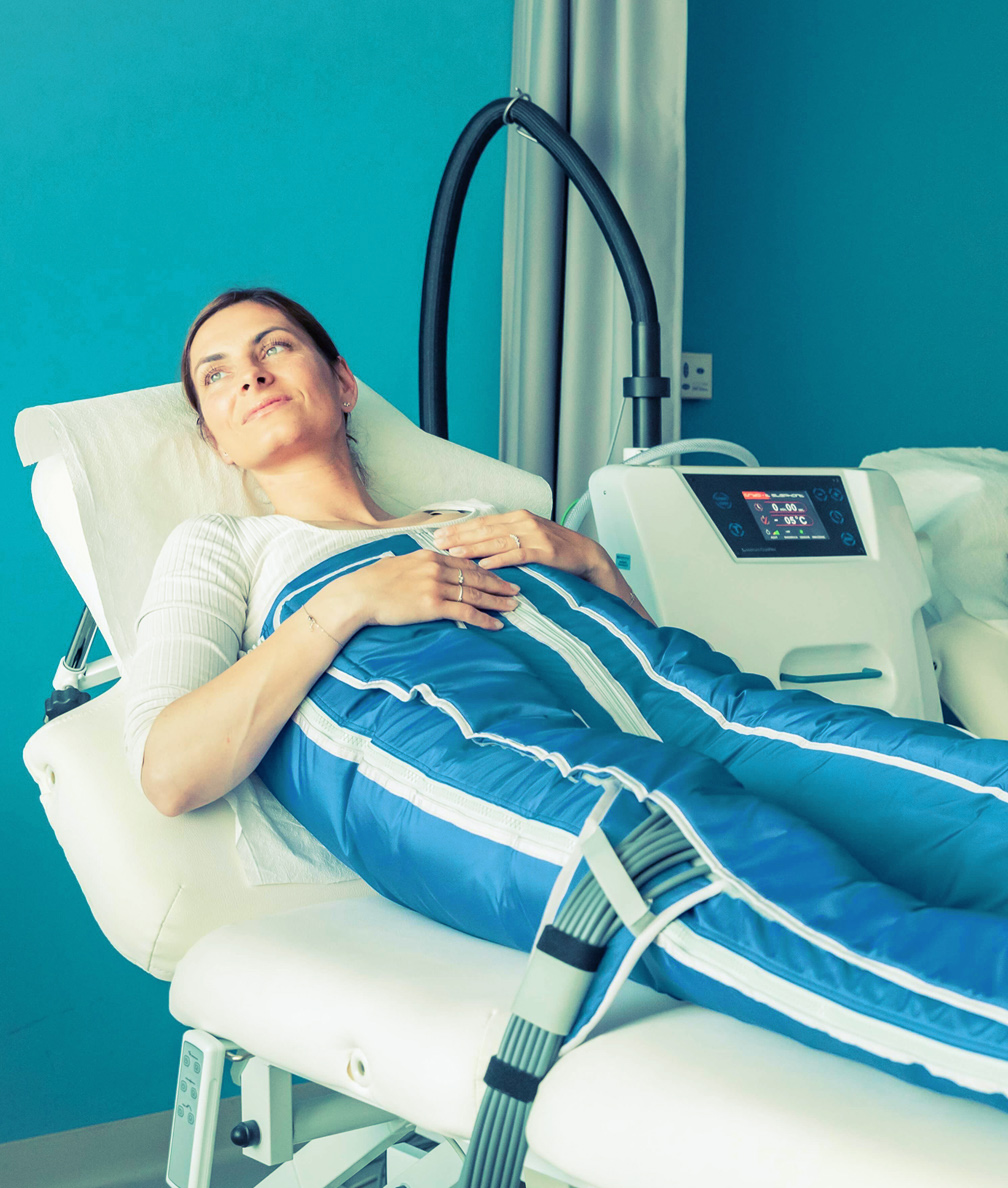 Odlično se povezuje s presoterapijo in hiperbarično kisikovo terapijo (HBOT) za še hitrejšo regeneracijo.